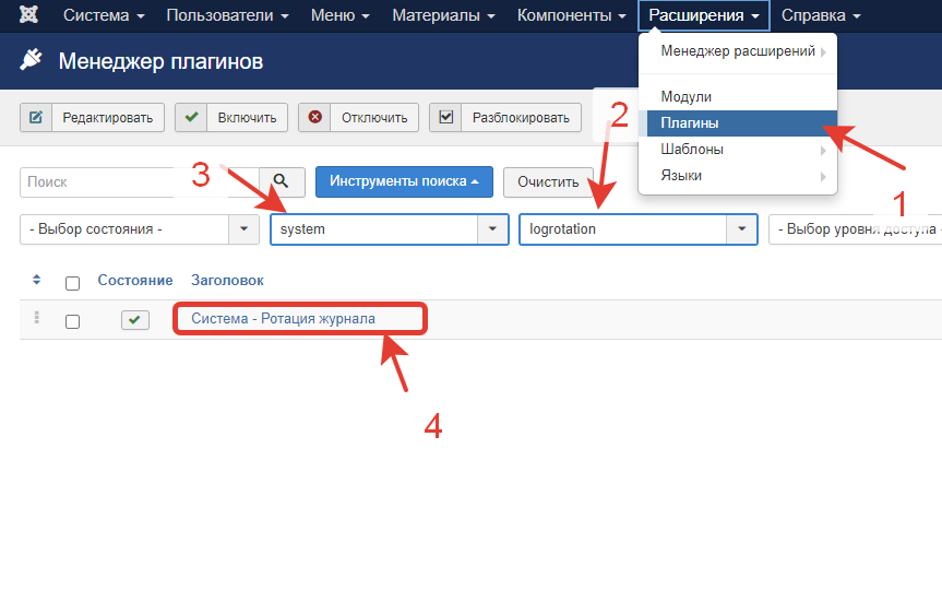Поэтому разработчиками Joomla было принято решение о создании плагина, который будет регулярно очищать такие файлы, а старые сохранять под порядковым номером в том количестве, которое будет указано в настройках. Именно таким образом работает система логов на любом сервере.