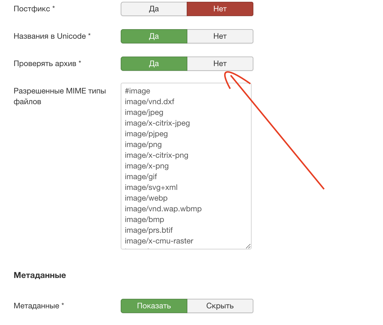 Мы изменили поведение загрузки архивов. Удалена старая опция. Теперь алгоритм такой: загрузка архивов разрешена сразу, но проверяется, если там есть зловредные файлы, то загрузка отменяется. Появилась новая опция в конфигурации "Проверка архивов". Если ее отключить, то загружать архивы вы сможете любые.