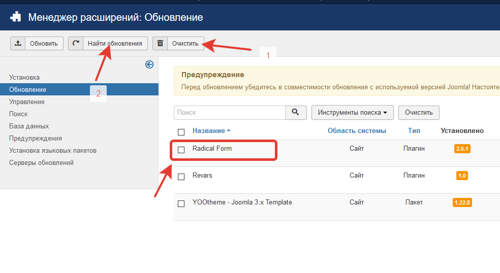 Выберите плагин RadicalForm и обновите до последней версии.