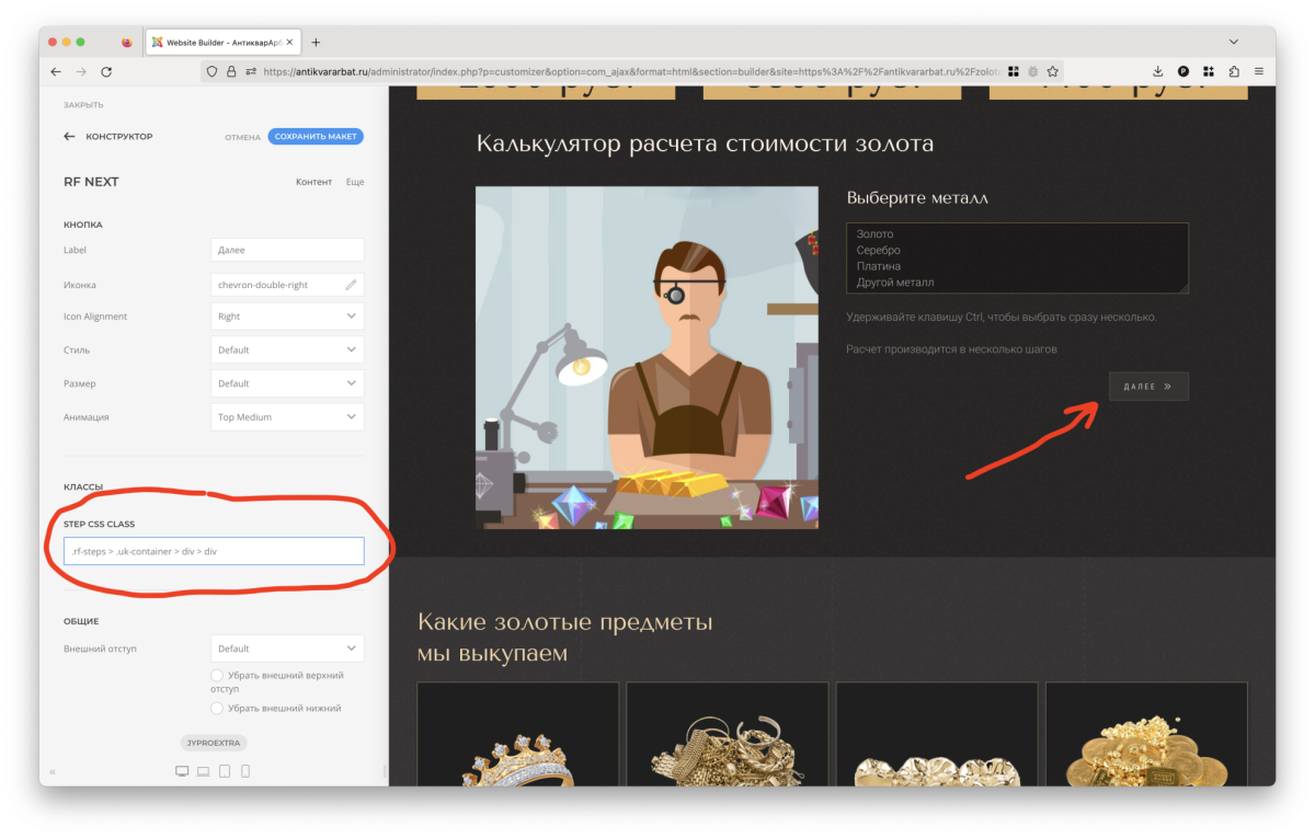 Какие классы нужно указывать в поле Step CSS classes?